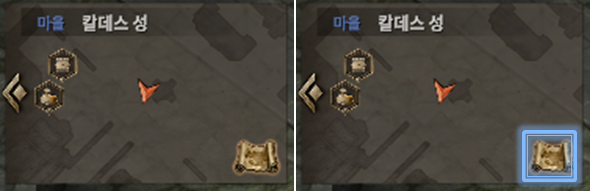 | 3 | 맵 타입 | [성], [마을], [필드], [던전], 총 4종류로 나누어져 있습니다. 맵 타입 아이콘을 선택하면 월드맵에서 해당 지역 타입과 일치하는 지역을 표시하거나 숨길 수 있습니다. |