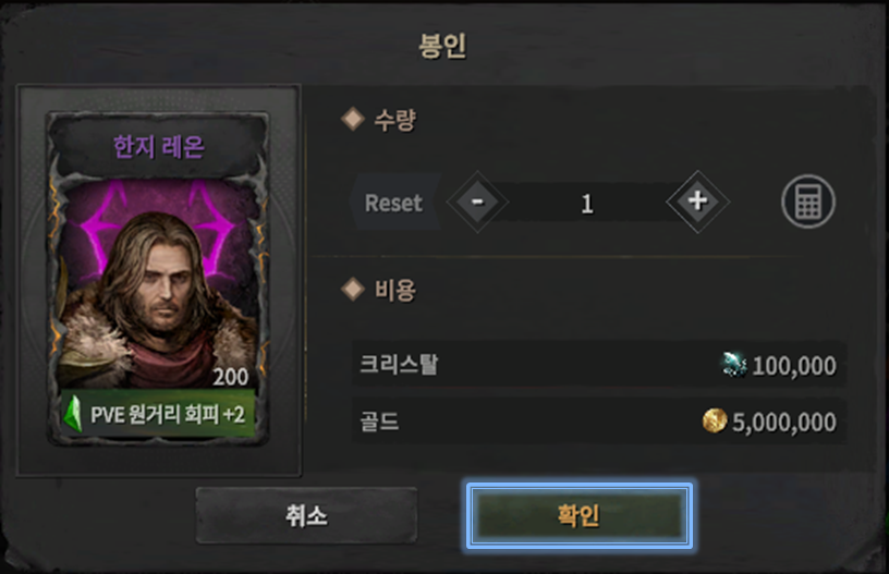② 봉인하고 싶은 수량과 봉인 비용을 확인한 후 [확인] 버튼을 선택합니다.