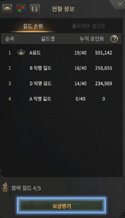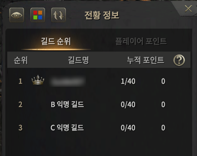 - 길드 순위 탭의 점령 포인트 정보는 일정 시간 마다 갱신됩니다.