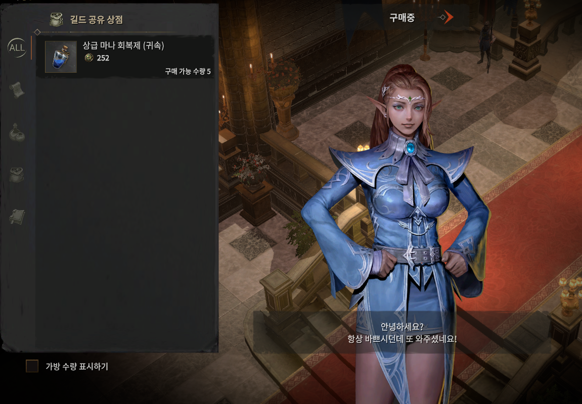 ⑤ 구매 직위에 해당하는 길드원은 길드 상인 NPC를 통해 상점에 등록된 아이템을 확인할 수 있습니다.