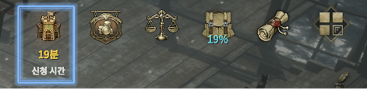 20:30부터 20:50까지 [신청 시간] 아이콘이 노출되고, 길드장은 해당 아이콘을 통해 참여할 영지를 선택하여 영지전 참여를 신청할 수 있습니다.