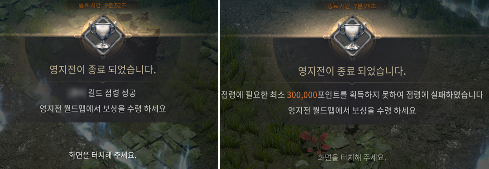 - 영지 점령을 위한 최소 조건은 영지전 종료 시 점령 포인트 300,000점 이상 달성입니다.
