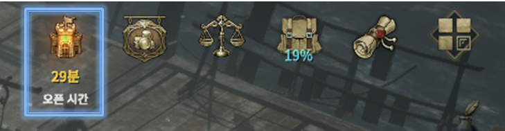 20:00부터 게임 화면 상단에 [영지전 오픈] 아이콘이 노출되며, 영지전 진행에 대한 사전 알림을 확인할 수 있습니다.
