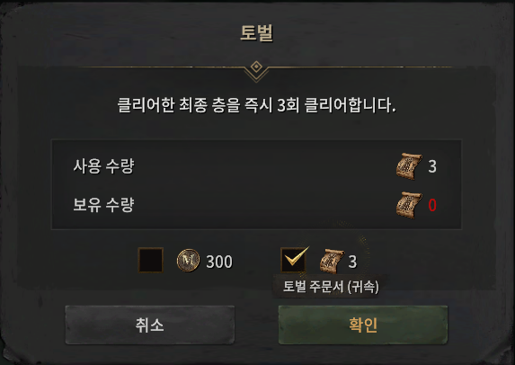 - 토벌 시스템은 클리어했던 악령의 탑 최대 층을 잔여 반복 클리어 가능 횟수만큼 즉시 클리어할 수 있는 기능입니다.