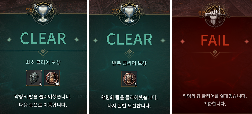 - 악령의 탑 보스 몬스터가 등장하는 층을 클리어할 경우 특별한 아이템을 획득할 수 있습니다.