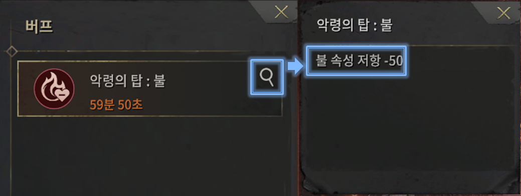 - 해당 층에서 적용 중인 버프/디버프는 캐릭터의 [버프 정보] 메뉴에서 확인할 수 있습니다.