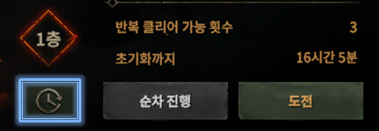 * 반복 진행: 선택한 층 클리어 시 해당 층 반복 자동 입장. 클리어 실패 시 자동 입장 취소