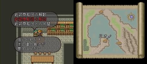 무장상선단의 두목인 '엔리케'와 대화하면 협상 성공입니다! 전부 세가지의 선택문이 나오는데요. 사진 처럼 두번 째 선택을 하면 됩니다. (다른 것은 안되어요~) 그리고 '시인의 파고트'를 얻을 수 있습니다!! 이제 동미라마와 모벨룸 그리고 누오노가 위치한 '北 론키드' 지방을 제국의 세력 하에 두게됩니다.
