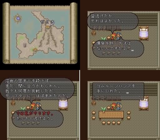 츠키지마를 빠져나와 샐러맨더들이 살고 있는 '제미오' 의 촌장에게서 코무른 화산 정상을 막고 있는 바위에 대한 이야기를 듣게 됩니다. 그리고 세번 째 사진처럼 커맨드 창에서 첫번 째 선택을 하면 - '코무른 해머' 를 얻습니다. 이제 화산을 막고 있는 바위를 부수러 고고~~~~~