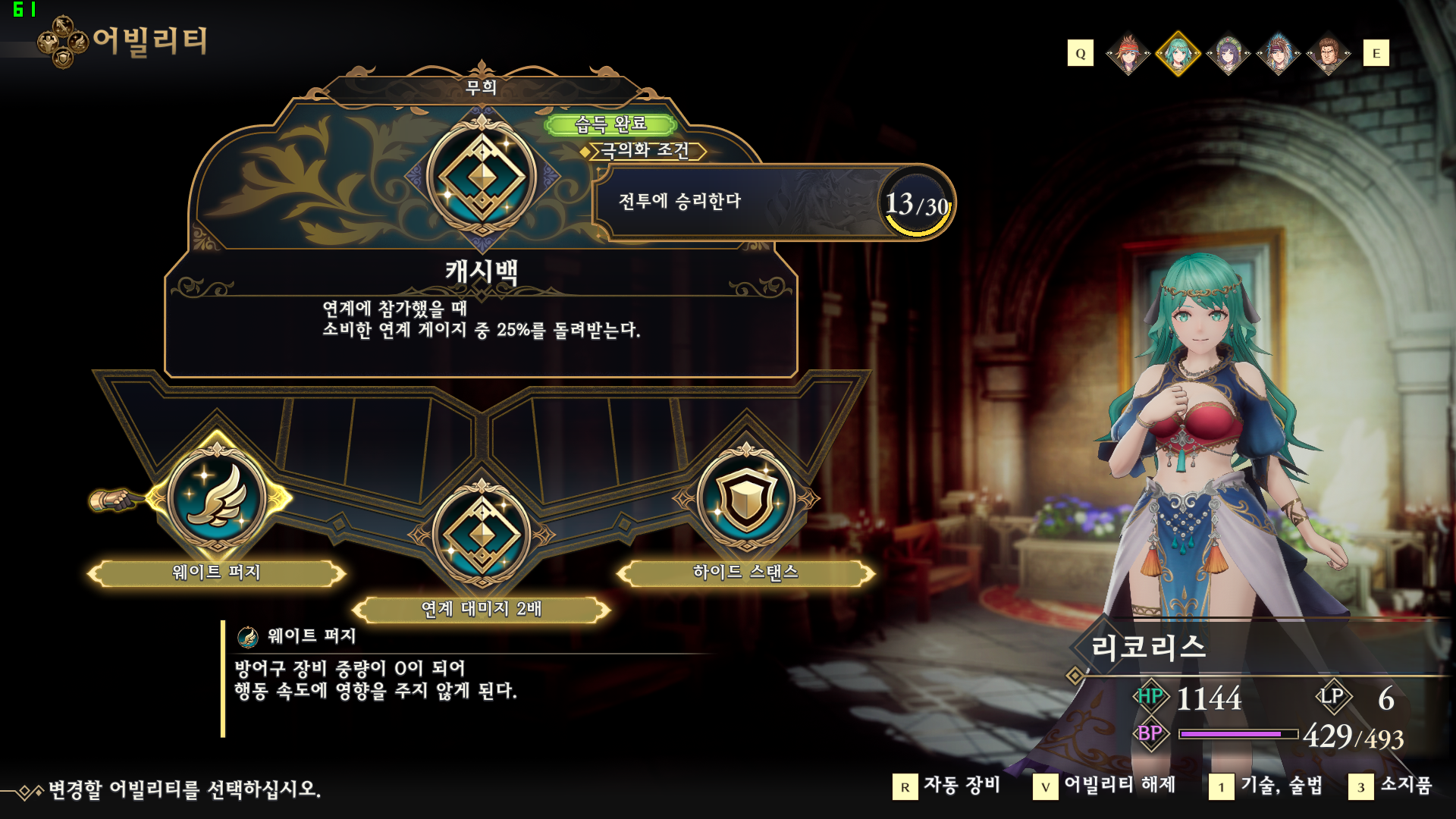제 파티에서 연계딜러중 제일 중요한 역할을 맡았는데.. 연계소비 없음 어빌은 확률이고 무희어빌이 있어 굳이 안 꼈네요 이쪽이 더 좋은 거 같고