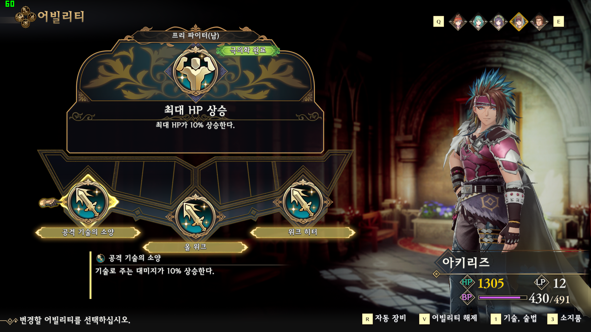 워크 히터는 닌자로 얻을 수 있고 기술 소양은 격투가로 얻을 수 있습니다