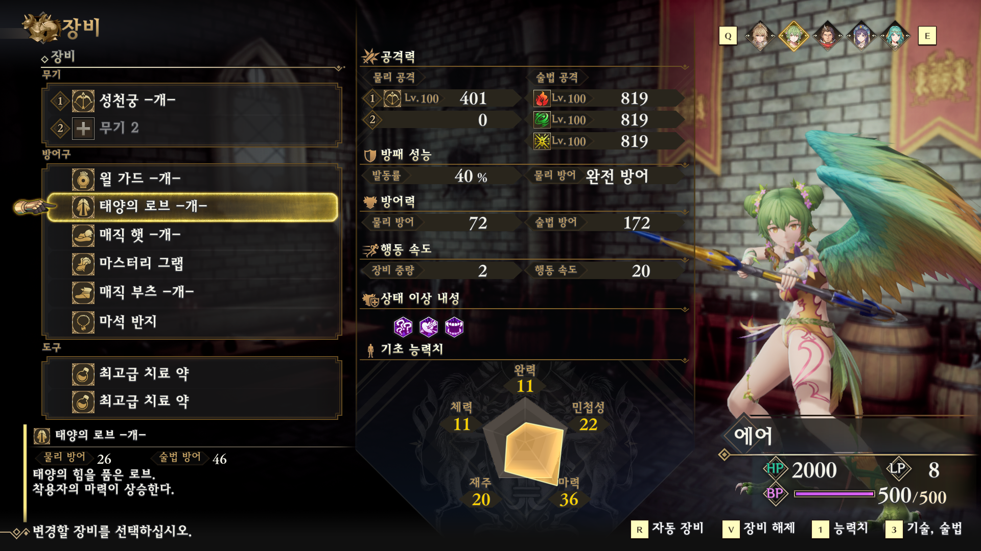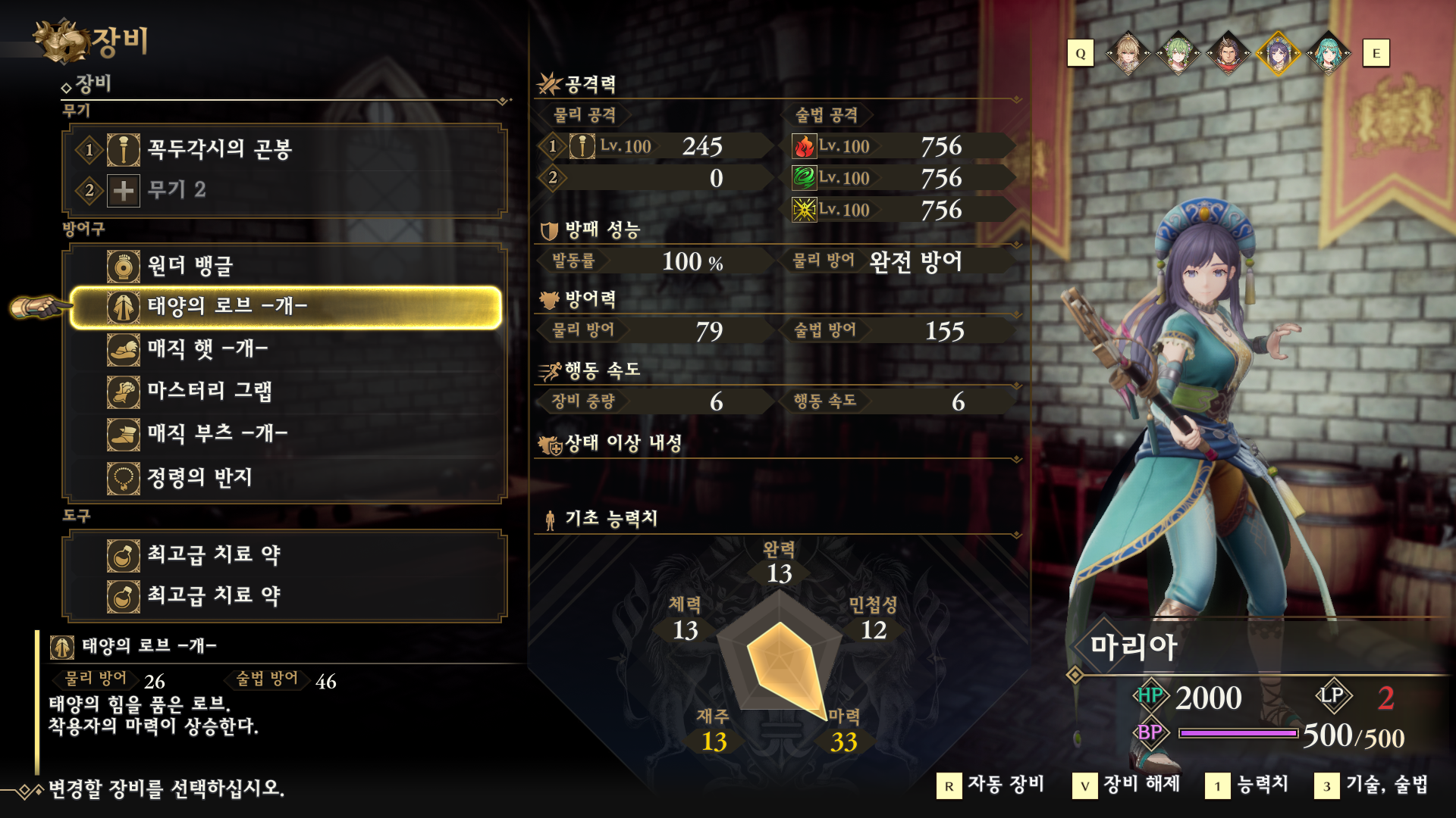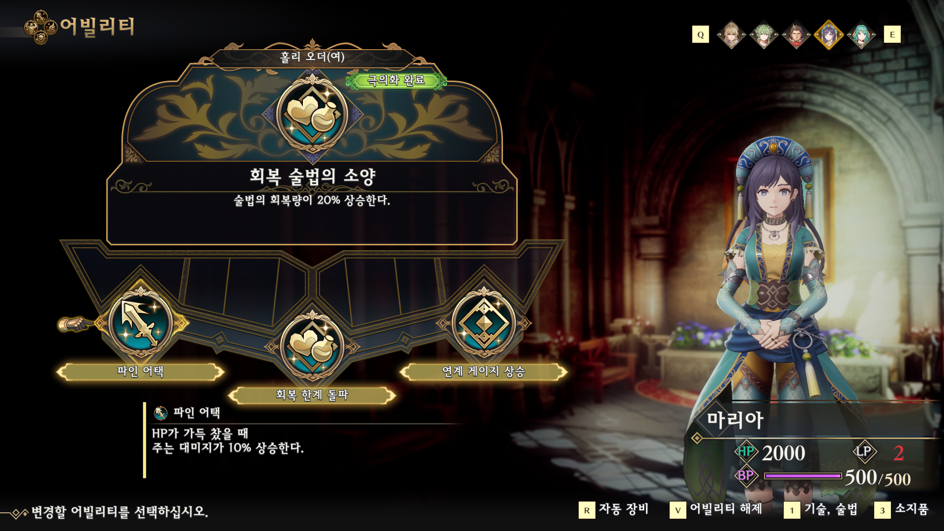 사실 방깍 거는 것밖에 안 했지만 힐량이 마력의 영향을 받으므로 높게 챙겨줍시다 보조딜러 겸 서포터 역할