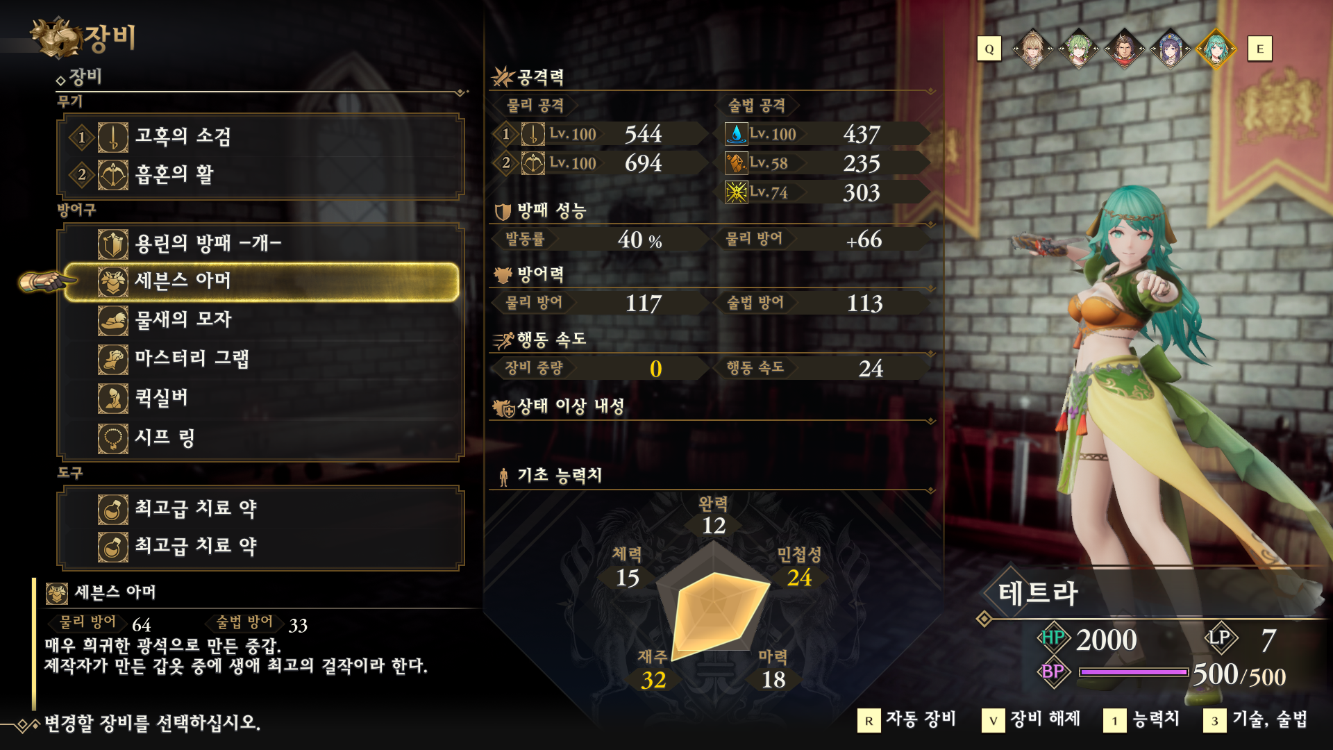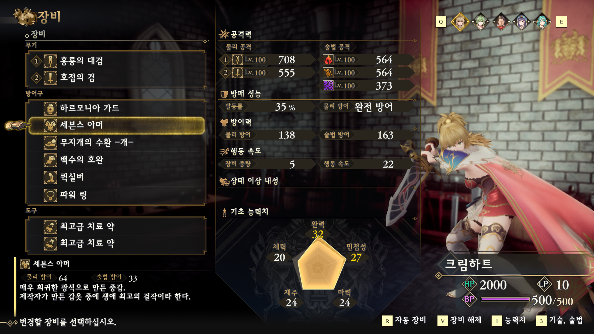칠영웅 들어가기 전에 장비 사진을 안 찍어놔서 장갑자리는 괴력장갑-개-로 대체해 주세요