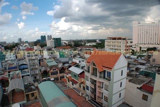 옥상에서 내려다 본 사이공강쪽. 사진속에선 강이 보이지 않으나... 분명 보인다. 고층 건물사이로...
