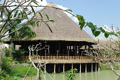 밑으로 강물이 흐르는 곳에 집을 짓고 살아가는 수상가옥