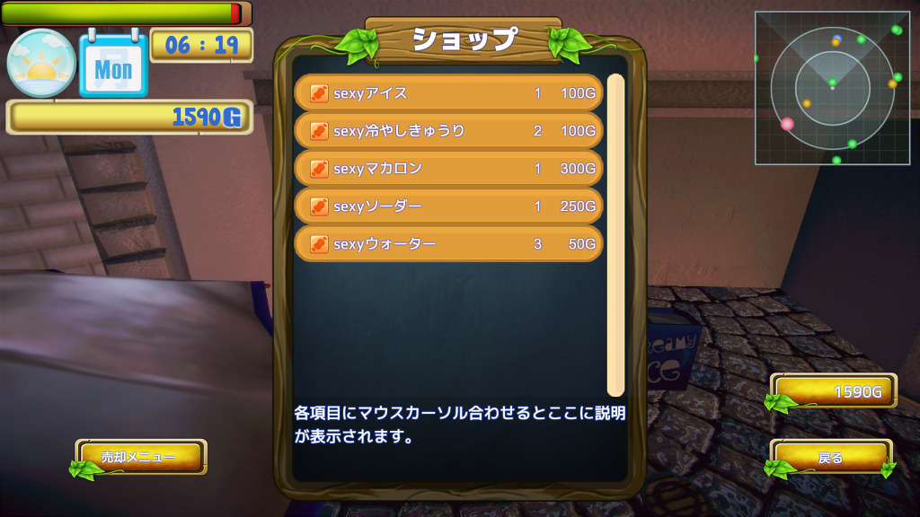 숍 걸들에게 자신이 가진 물건을 팔아서 골드로 환전할 수도 있다.