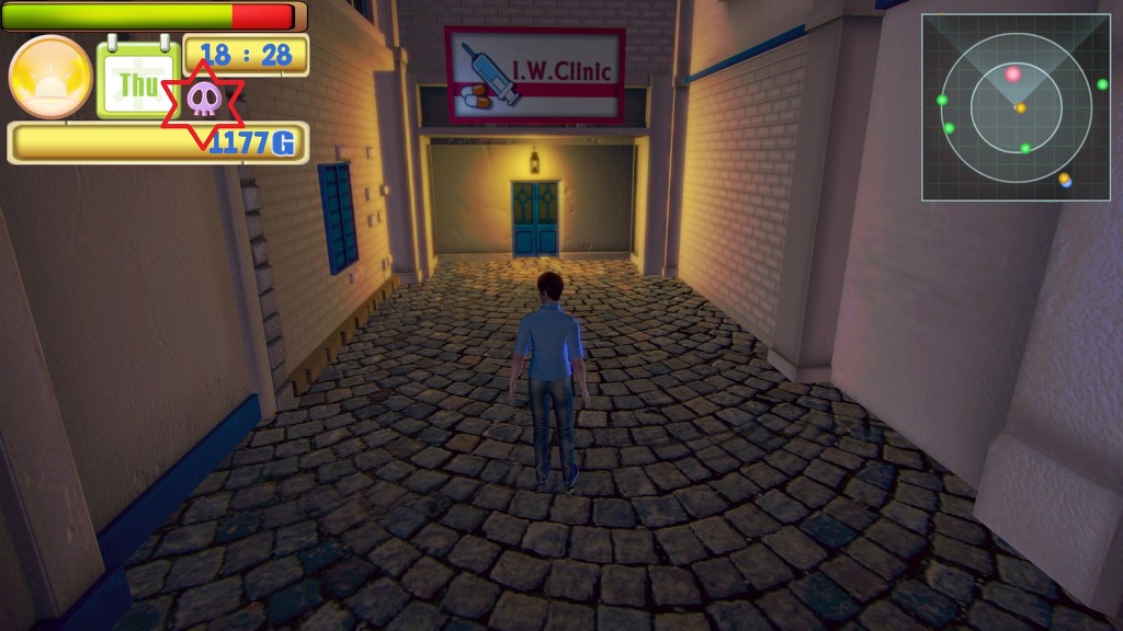 길바닥에 쓰러지면 병원에서 부활하게 되는데 가지고 있는 소지금이 띁긴다.