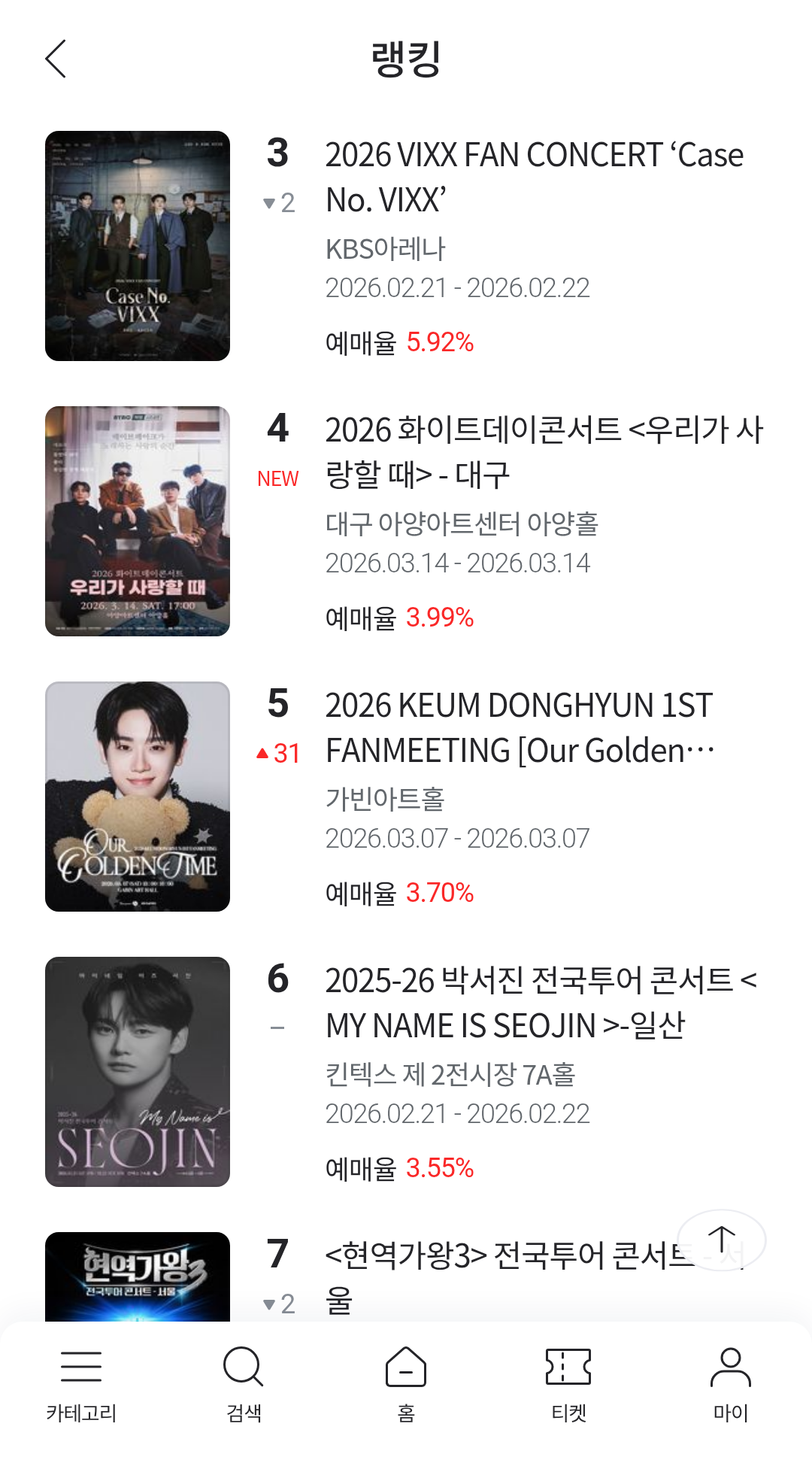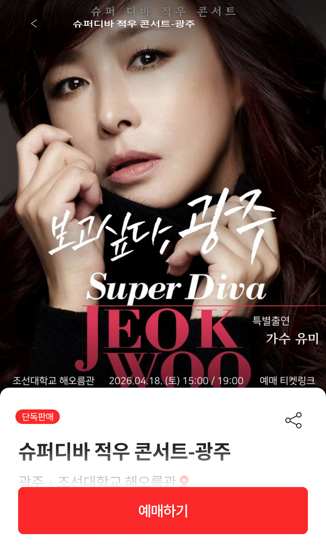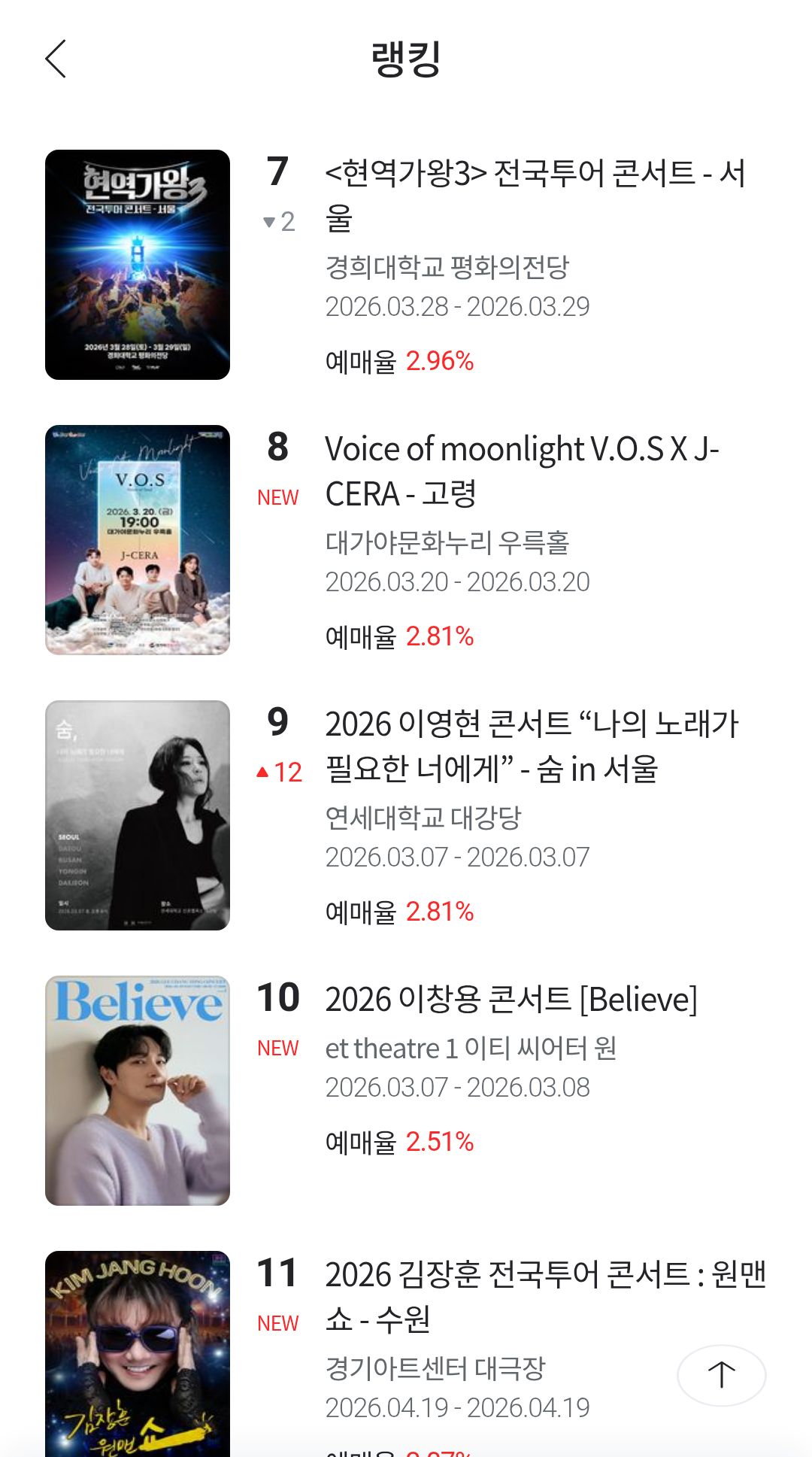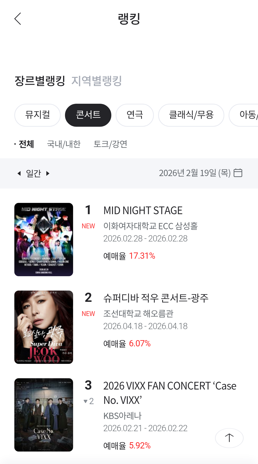 광주 콘서트 오픈하자마자 랭킹2위 작성자단풍잎|작성시간26.02.19|조회수330 목록 댓글 13 글자크기 작게가 글자크기 크게가 적우님 콘서트 티켓 장르별 판매랭킹 2위 입니다 광고도 못했을텐데 대단하십시다!!!!1부 2부 합해500 장 정도 나간거 같아요여러분 가족 모두 봄나들이 가요울 적우님께 힘더 팍실어줍시다!!!! 다음검색 현재 게시글 추가 기능 열기 북마크 공유하기 신고 센터로 신고 댓글 댓글 13 댓글쓰기 답글쓰기 댓글 리스트 작성자듕타 | 작성시간 26.02.20 1위로 올라갑시다 아좌좌!!! 답댓글 작성자단풍잎 작성자 본인 여부 작성자 | 작성시간 26.02.20 이제 광고하면 더더더올라가겠죠?!! 답댓글 작성자듕타 | 작성시간 26.02.20 네! 당연하죠ㅎㅎ 작성자베푸는사랑 | 작성시간 26.02.20 역시 짱이십니당^^ 답댓글 작성자단풍잎 작성자 본인 여부 작성자 | 작성시간 26.02.20 ㅋㅋㅋ 댓글 전체보기