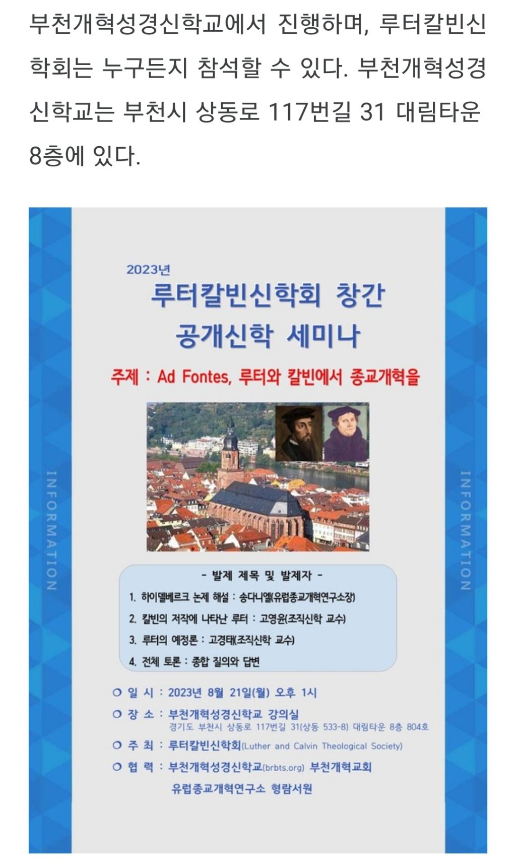 #부천개혁교회#루터칼빈 신학회#하이델베르크 논제해설#유럽종교개혁연구소 형람서원#부천개혁성경신학교 부천개혁교회#상동로117번길31