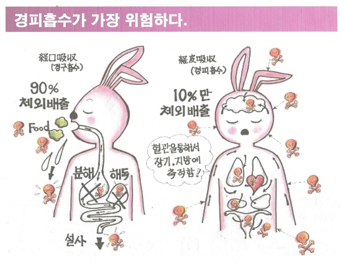 입(경구흡수), 코(경기도흡수), 피부(경피흡수) 중 경피흡수가 가장 위험하다고...