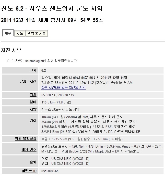 [속보] 남극섬 6.2 강진발생(한국11일오후6시54분55초) 작성자서방박사|작성시간11.12.11|조회수227 목록 댓글 0 글자크기 작게가 글자크기 크게가 다음검색 현재 게시글 추가 기능 열기 북마크 공유하기 신고 센터로 신고 댓글 댓글 0 댓글쓰기 답글쓰기 댓글 리스트
