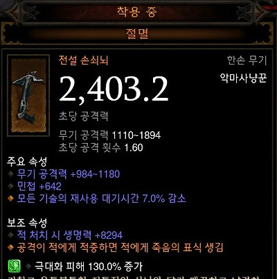 무기: 높은 초뎀 양손쇠뇌 or 절멸 - 피해 - 재감 or 자감