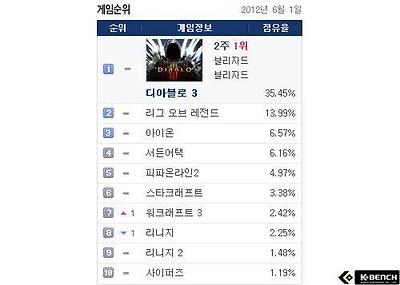 높은 수치로 PC방 점유율 1위를 유지하고 있는 디아블로3 그러나 그런 문제들에도 불구하고 디아블로3의 상승세는 꾸준히 이어졌는데, PC방 게임 전문 리서치 서비스인 게임트릭스에 의하면 디아블로3는 출시일 다음 날부터 1위에 올라 현재까지 30% 이상의 점유율을 유지하고 있을 정도로 당장 대적할 게임을 찾기 어려울 정도의 큰 인기를 얻고 있다.