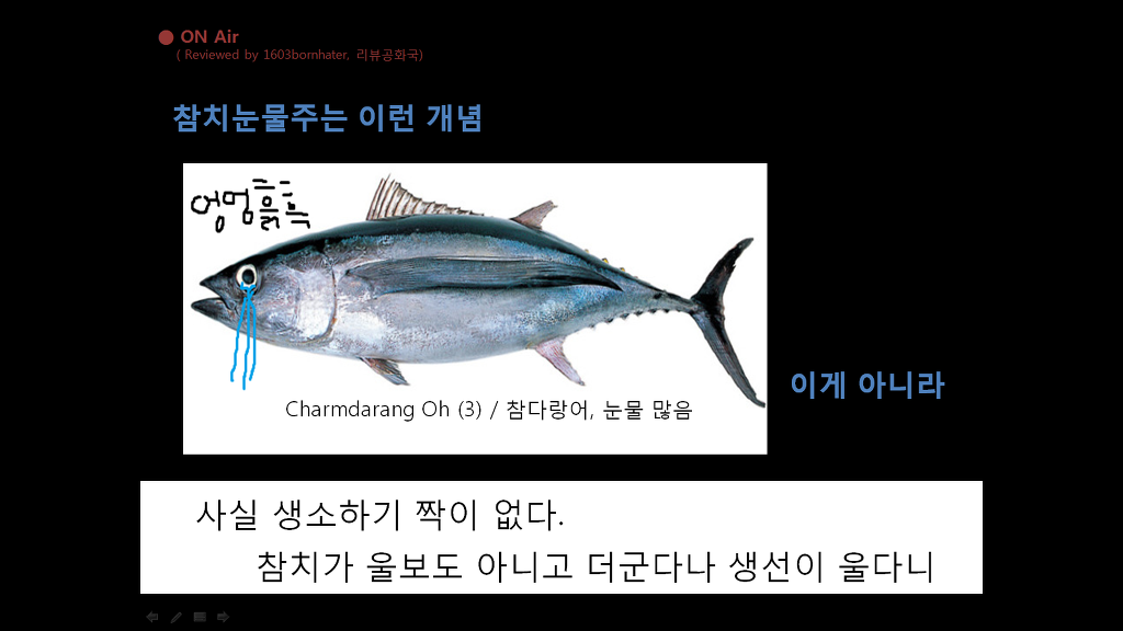 P.S 참치 눈물주는 참치기름이 아니라 참치 눈알을 이용함