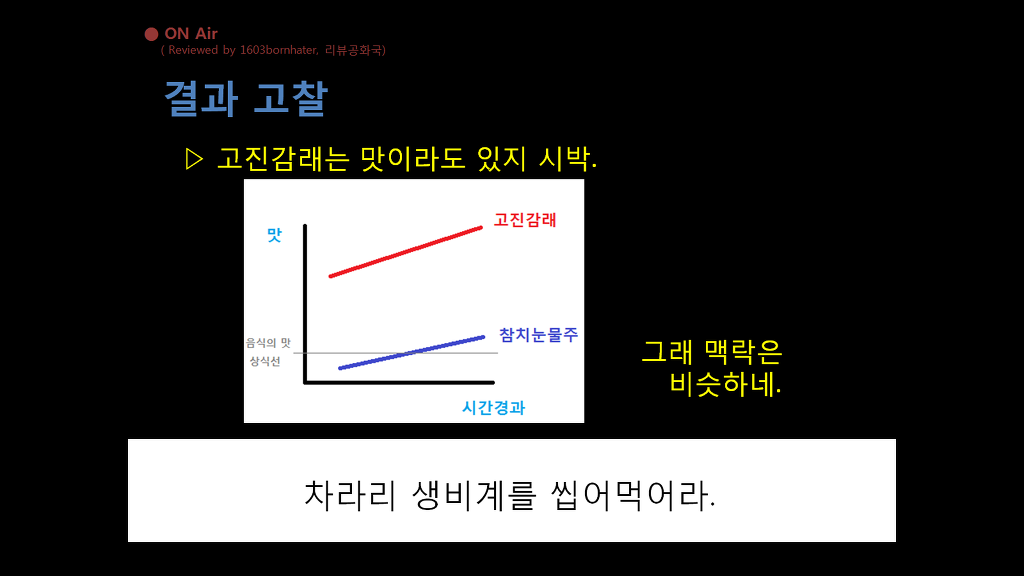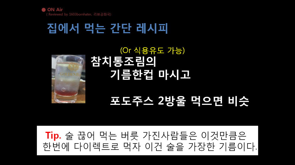 작성자헤일리.H 작성시간 15.12.23 ㅋㅋㅋㅋㅋ 이런 게 있군요. 리뷰 개재밌..ㅋㅋㅋ 참치기름 한사발에 포도주방울 2방울이라니. 그걸 근데 맛있다고 먹는 사람도 있는 걸까요?ㅜㅜ