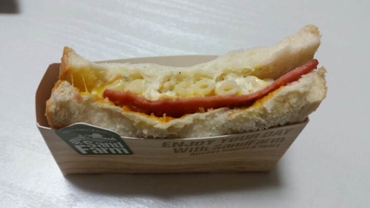 슬라이스 햄 위에 마카로니만 어설프게 있는게 아니라, 치즈랑 샐러드처럼 뭐가 범벅되어 있는데