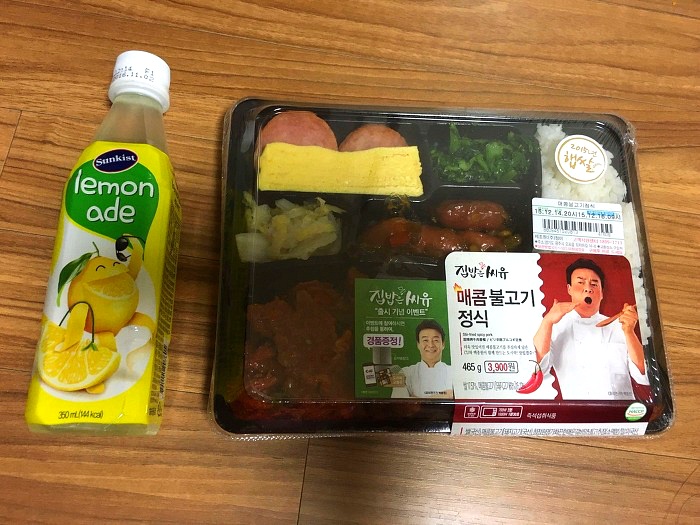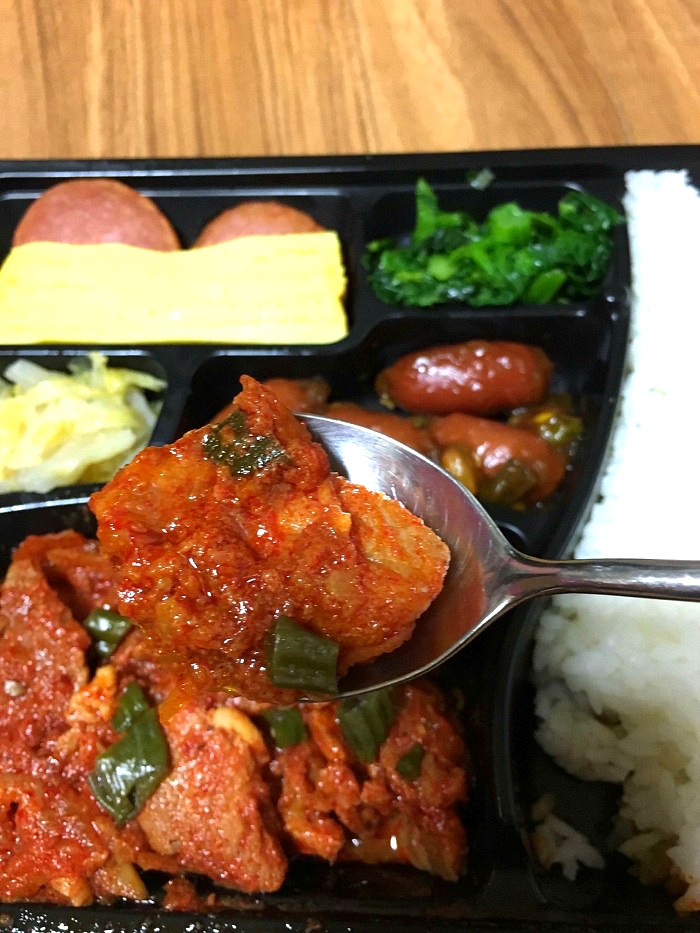백종원 한판 도시락(3500원)은 다 나가서 매콤불고기를 쟁여왔다.