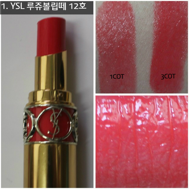 가장먼저 입생로랑 루쥬볼립떼 12호야. 세 제품들중에 가장 촉촉하고, 미끄러지듯이 발려. 조금 더 과장하자면, 립에 오일 바르는 느낌..? 바르고나면 립스틱에 립글로스까지 같이 바른 느낌이라 건성들도 바르기에 무난한꺼같아. 복숭아향이 나서 (이브로쉐 복숭아향이랑 엄청 비슷함!!!) 바를때 기분좋아 ㅋㅋㅋ 지속력은 2시간 정도로 디게 짧아서 자주 발라줘야 하는데, 또 무른 제형이다보니 금방금방 없어지는 기분이야ㅠㅠ 색은 코랄<핑크이고, 요즘 제일 자주 쓰는 립스틱 중에 하나인거 같아.