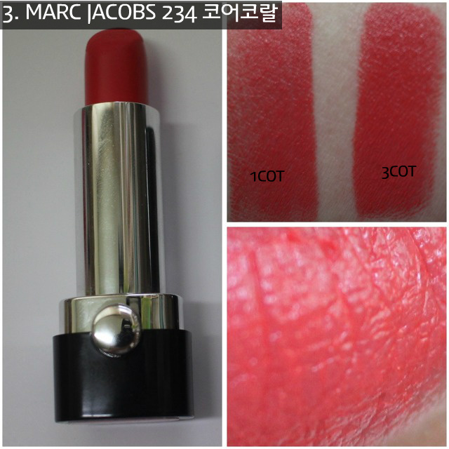 마지막은 아직 국내에 미출시된 마크제이콥스 코스메틱의 코어코랄이야. 제일처음 마크제이콥스가 코스메틱을 런칭한다는 얘기듣고 기뻐서 날뛰다가 국내출시는 미정이라는 소문에 다시 가라앉았던...ㅜㅜ 일본은 아직 런칭했는지 모르겠는데, 가까이는 홍콩에서 구매할 수 있을꺼고, 보통 세포라에서도 많이 사더라. 나는 여행갔을때 세포라에서 샀고, 공구도 많이 하던데 직접 가서 구매하는거랑 공구랑 가격차이가 크게 안나니깐 공구추천
