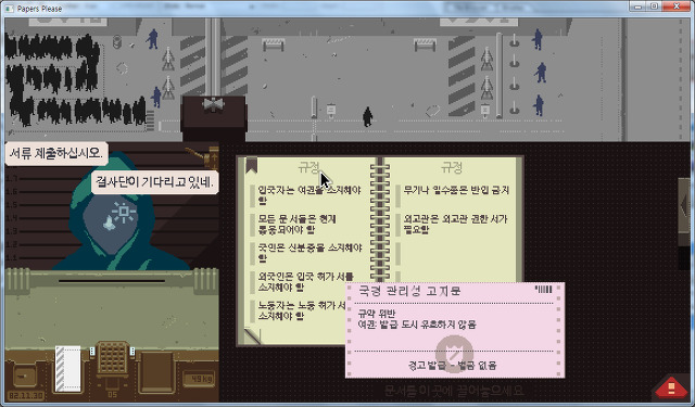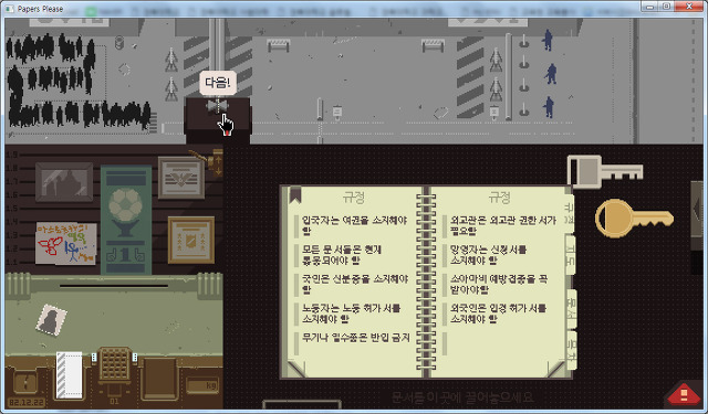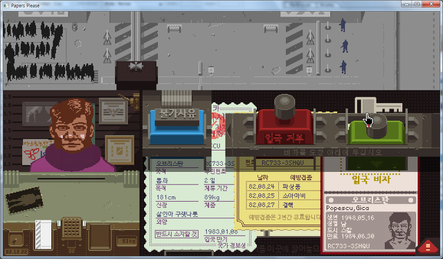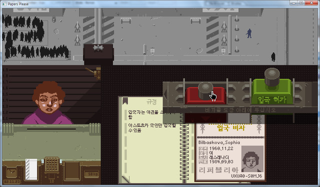 국경 검문소에서 하는 일, 입국 심사를 하는 게임이다.