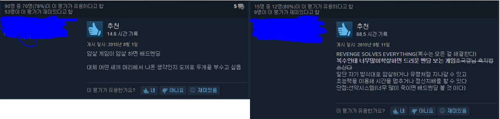 (그럼에도 불구하고 일단 재미있다. 위의 '두개골을 깨부수겠다'는 리뷰도 리뷰 자체는 '추천'이다)