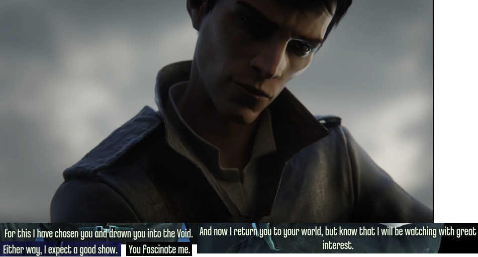 "이제 널 원래 세계로 돌려보내겠지만, 내가 굉장히 흥미를 갖고 지켜볼 거란 걸 알고 있도록 해."