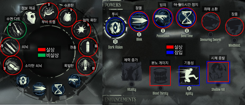 비살상의 경우 장비와 능력의 선택 영역이 매우 제한된다.