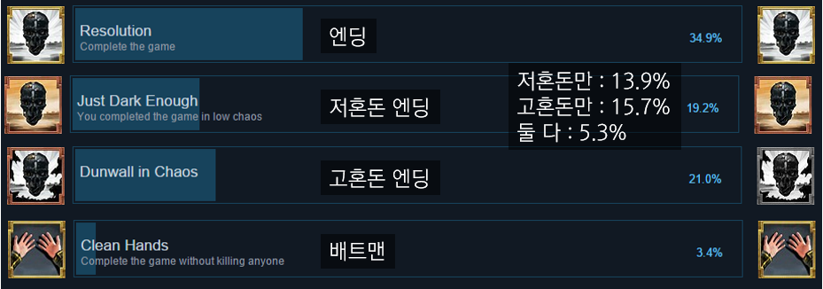 [스팀 도전과제 달성률로 본 엔딩의 비율]