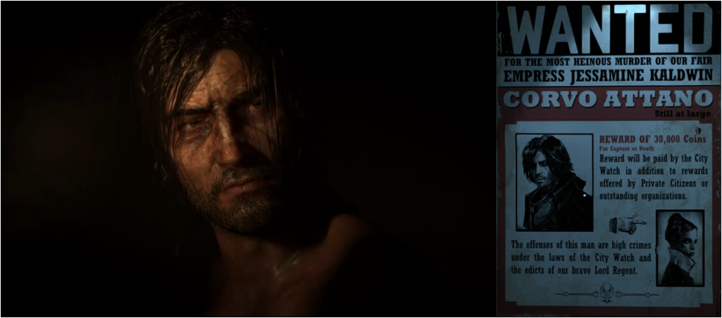 스토리는 귀족파의 음모로 인해 여제 암살과 황녀 납치의 누명을 쓰게 된 여제의 개인 경호이자 (작중 공공연한 비밀로 취급됨)여제의 연인이자 황녀 에밀리의 아버지인 코르보가 방관자라는 신적 존재의 도움과 왕당파의 지원을 받아 가면을 쓰고 역병이 퍼진 도시를 돌아다니며 귀족파 인원들을 차례차례 처리한다는 것이 기본 골자인데,