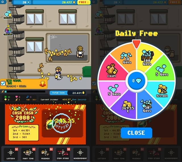 게임의 내용은 흙수저인 주인공이 복권을 긁어 당첨금을 모아서 점점 부자가되어 금수저로 거듭나는 내용이다.
