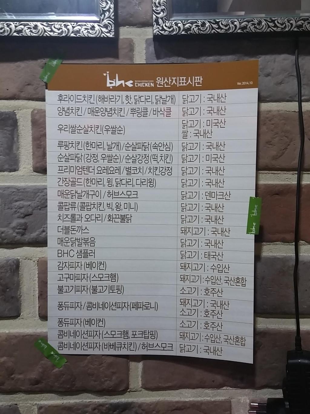 ▶ 이건 솔직히 통수 각 BHC. BHC는 본래 하림&마니커(국내산)닭을 쓴다.