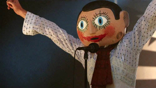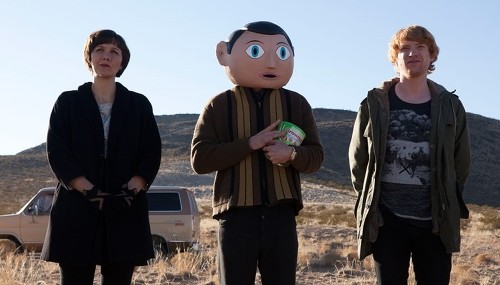 [프랭크]의 출연진은 [비긴 어게인] 못지 않게 화려했다. 비록 엄청난 흥행성을 가진 배우들은 아니였지만 한창 주가를 치솟고 있는 [엑스맨 시리즈]와 [프로메테우스]의 마이클 패스밴더, 국내에서 좋은 성적을 거둔 타임 로맨스 [어바웃 타임]의 돔놀 글리슨, 그리고 [다크나이트]에서 레이첼 도스역을 연기한 메기 질렌할까지 주연들은 어디선가 한번쯤 얼굴을 본 인물들로 탄탄한 출연진임에는 틀림없었다. [프랭크]의 네이버상 장르는 코미디, 음악 영화에 코미디가 결합된다면 발랄한 이야기의 신나는 내용을 생각하는 관객들 또한 있을 것이다. 하지만 [프랭크]가 서있는 위치는 [비긴 어게인]의 밝은 이미지와는 정반대의 방향을 바라보고 있다.