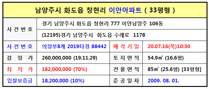 입찰기일 : 7월 16일(목) 의정부지방법원