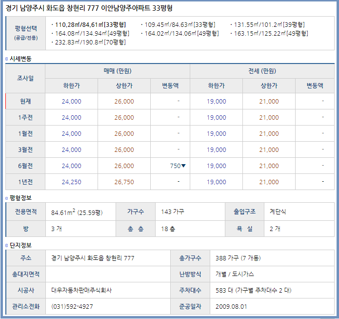 냠양주시 화도읍 창현리 이안아파트 33평형