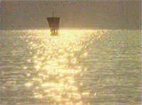 아더왕을 싣고 성지 아발론으로 떠나가는 돛배 |