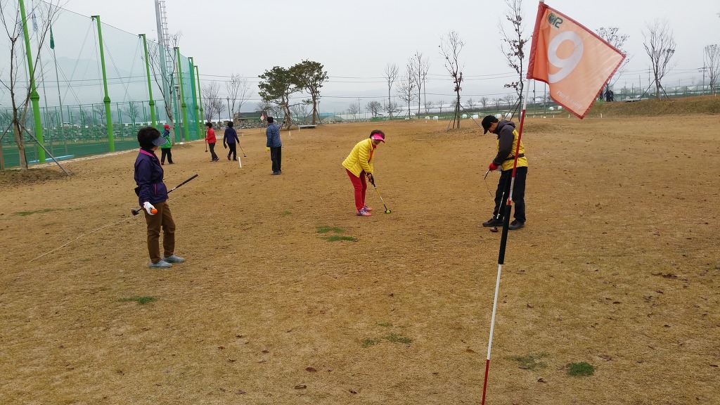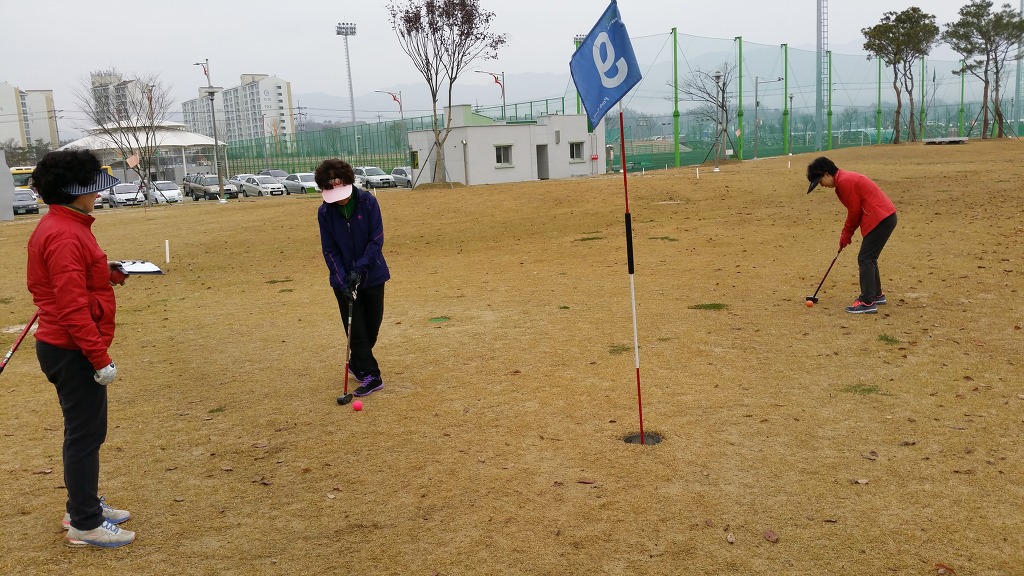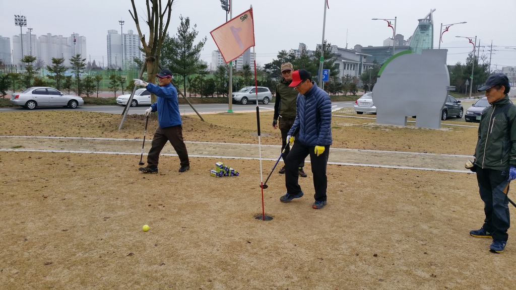 젖은 잔디위에 오색 공을 굴려 홀컵에 넣는 쾌감을 느끼고, 동행인과 상호 정감 어린