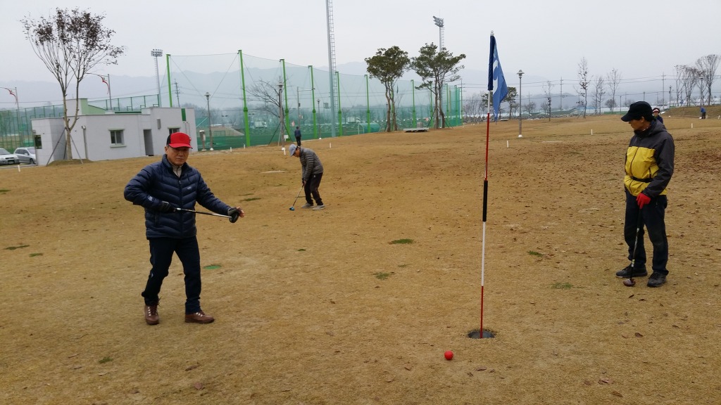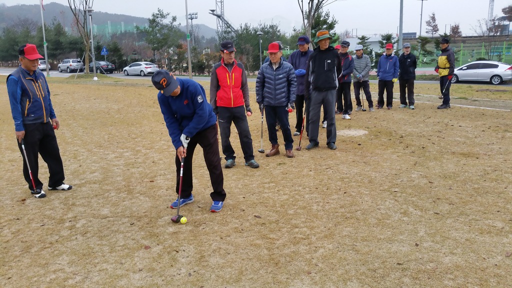 제85회 정기11월 월례대회개최,겨울을 맞아 황금빛으로 물든 구장, 겨울비에 촉촉히
