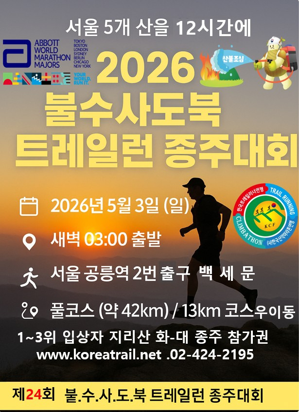 2026년 한국산악마라톤연맹 상반기 대회 작성자트레일|작성시간25.11.12|조회수19 목록 댓글 0 글자크기 작게가 글자크기 크게가 다음검색 현재 게시글 추가 기능 열기 북마크 공유하기 신고 센터로 신고 댓글 댓글 0 댓글쓰기 댓글 리스트