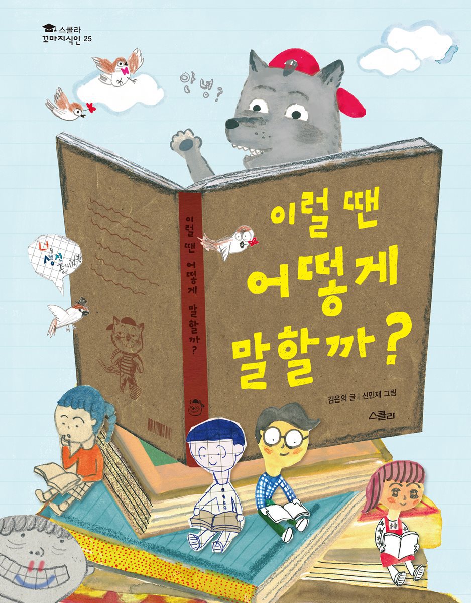 이번에 출간된 《이럴 땐 어떻게 말할까?》는 ‘스콜라 꼬마지식인’ 시리즈 25번째 권으로, 어린이들이 평소에 자주 쓰는 말과 글을 바르게 배울 수 있도록 알려 줍니다. 꼬마 늑대 꼼마가 학교에 가서 아이들과 생활하며 벌어지는 이야기 속에서 어린이들이 꼭 알아야 할 언어 습관에 대한 정보가 담겨 있습니다.