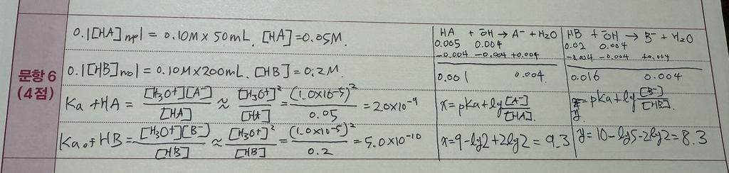 풀이~~~~. HA의 Ka=답 이렇게 풀이따로 답 따로 안 쓰고
